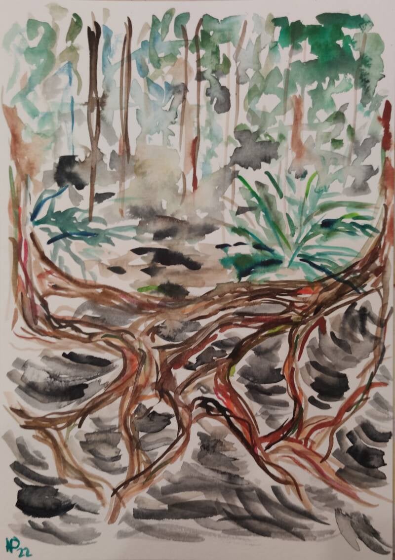 This series is entirely painted with acrylic inks on watercolour paper. The format of each picture is 32 x 24 cm.